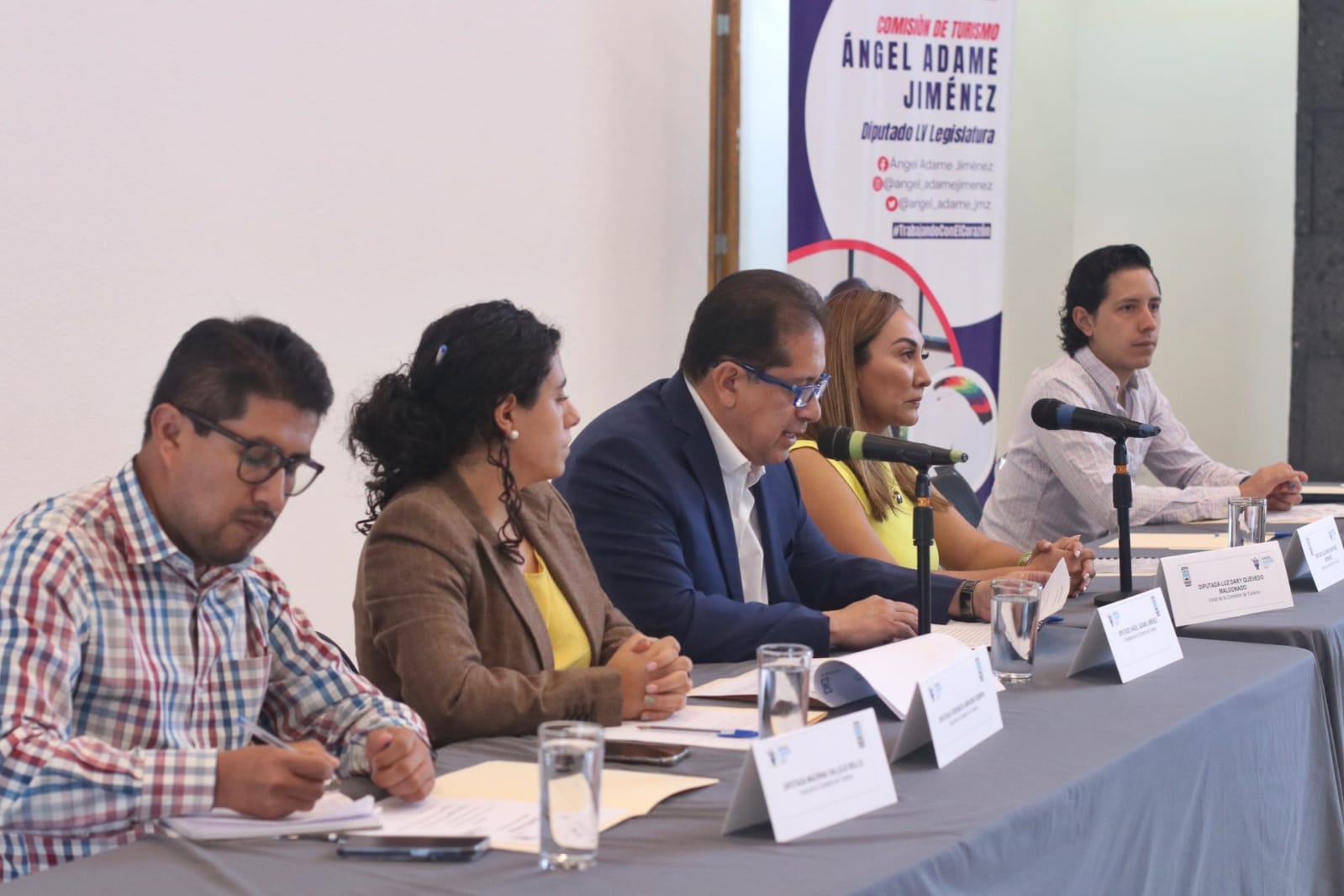 La toma de protesta a cargo del diputado Ángel Adame Jiménez se desarrolló con las atribuciones que le concede el artículo 53 fracción segunda del Reglamento para el Congreso del Estado de Morelos, con la presencia de la diputada Luz Dary Quevedo Maldonado, integrante de la Comisión de Turismo.